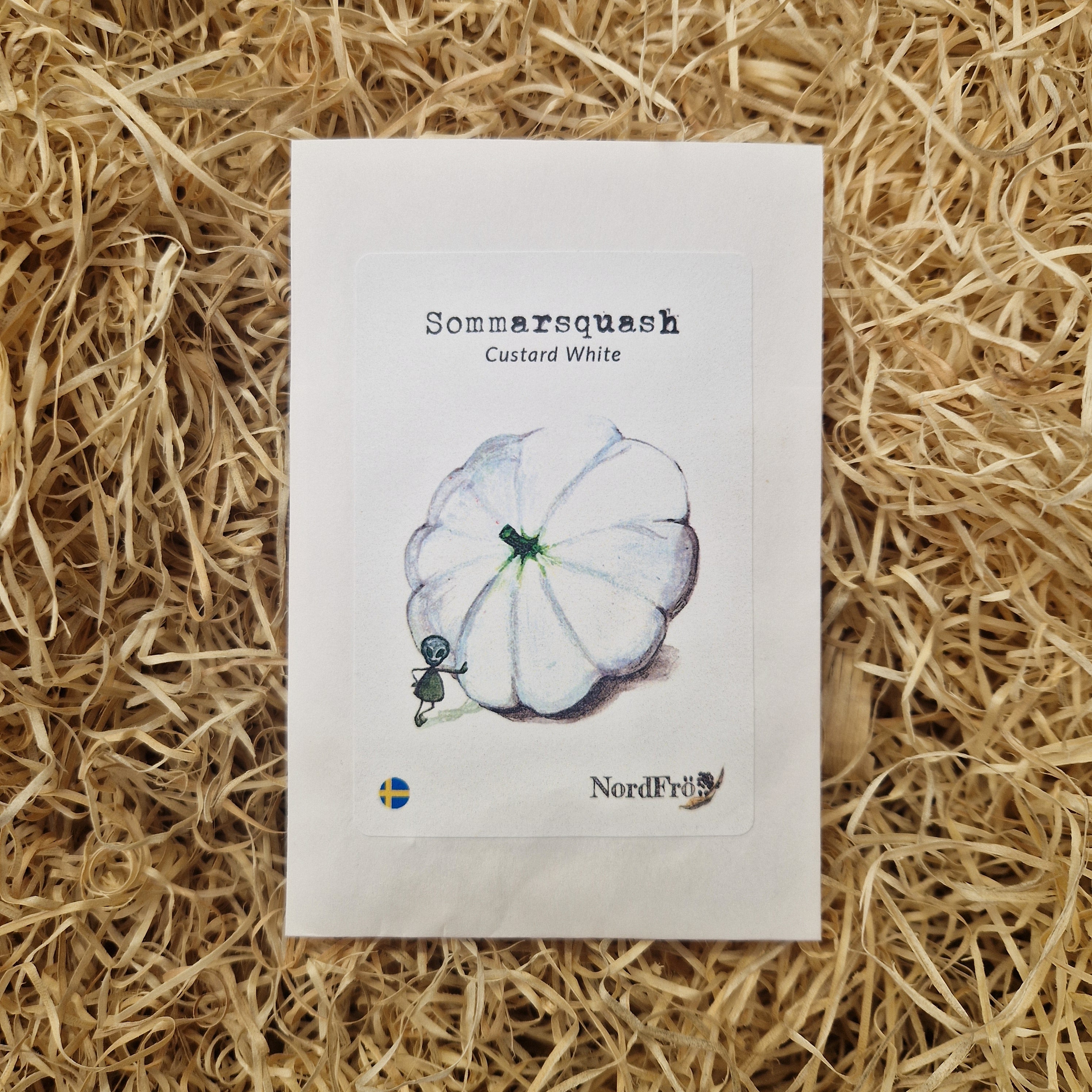 Custard White är verkligen en spännande sommarsquash. Förutom utseendet, som påminner om gräddvita flygande tefat, och ursprunget, som går åtminstone 500 år tillbaka , så är detta en riktigt välsmakande och samtidigt hållbar squash.