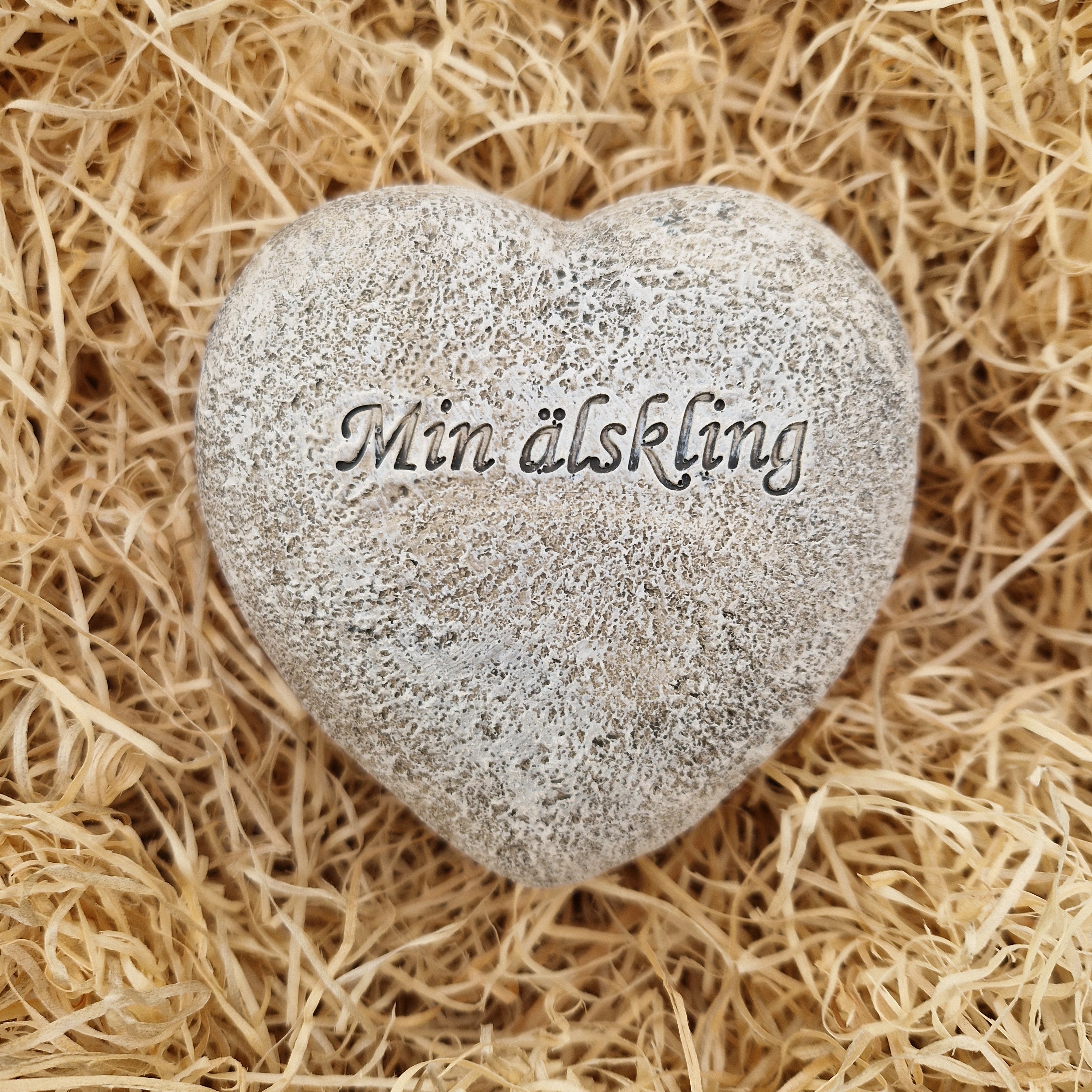Dekoration i kompositmaterial som liknar en sten.
